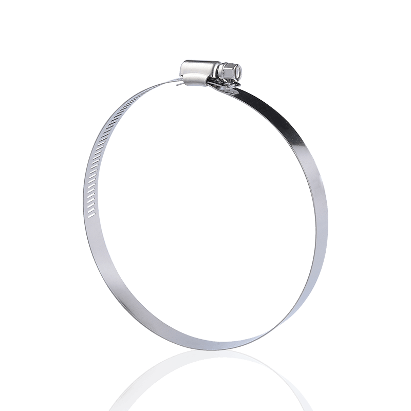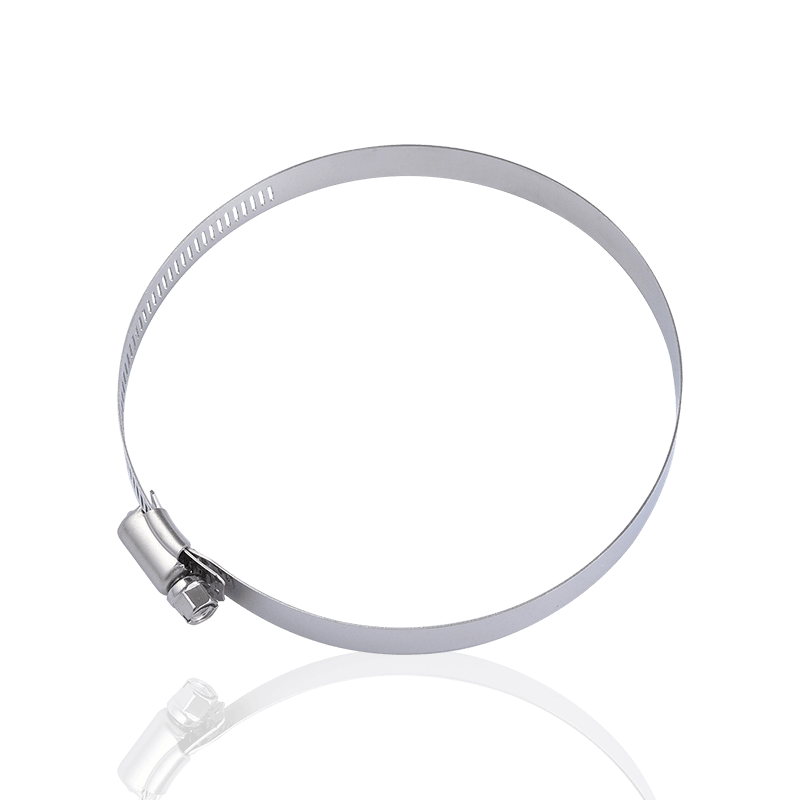 Terbuat dari baja tahan karat berkualitas tinggi, memiliki sifat anti karat dan anti korosi yang sangat baik. Sekalipun digunakan dalam waktu lama di lingkungan yang keras seperti lembab, asam, dan alkali, permukaannya tetap halus, efektif mencegah karat dan kerusakan, serta memperpanjang masa pakai. Melalui proses stamping melalui lubang, alur gigitan pada sabuk baja dilubangi, yang tidak hanya mengurangi berat keseluruhan, tetapi juga memungkinkan gigi sekrup tertanam erat di dalam alur. Desain ini memberikan kekuatan gigitan yang lebih kuat saat mengunci, memastikan kekencangan dan penyegelan sambungan.